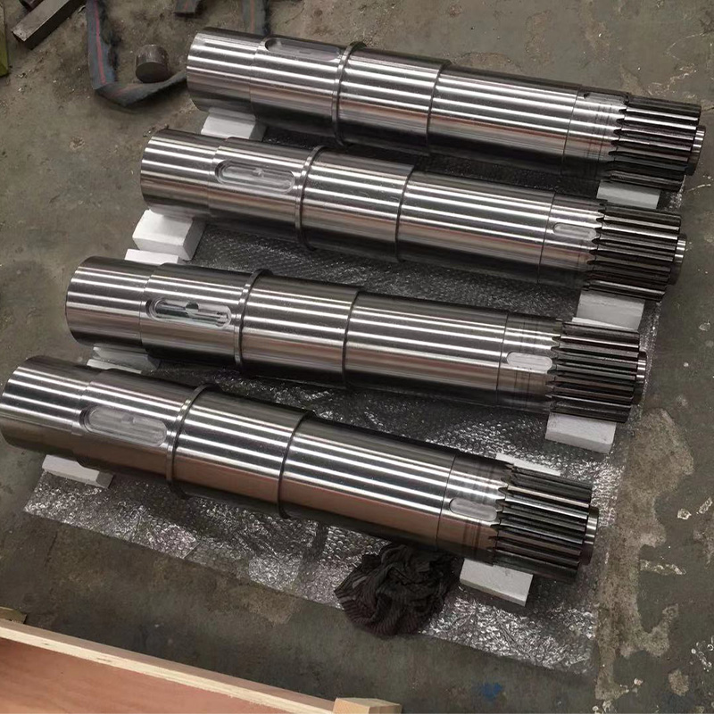 棒料、鍛件 → 粗車(chē)加工 → 調質(zhì) → 精車(chē)加工 → 銑鍵槽 → 熱處理(表面淬火貨滲碳淬火) → 研磨中心孔 → 粗磨 → 精磨 → 成品檢測包裝