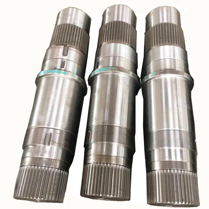 棒料、鍛件 → 粗車(chē)加工 → 調質(zhì) → 精車(chē)加工 → 銑鍵槽 → 熱處理(表面淬火貨滲碳淬火) → 研磨中心孔 → 粗磨 → 精磨 → 成品檢測包裝
